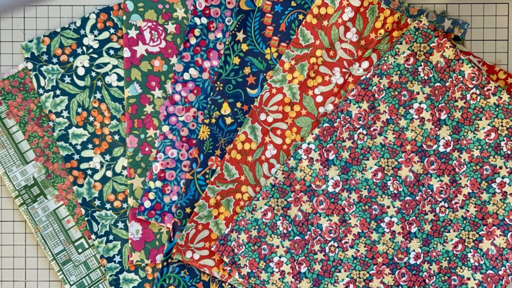 今回のリースには、すべてリバティのクリスマスコレクション柄を使用しました。
