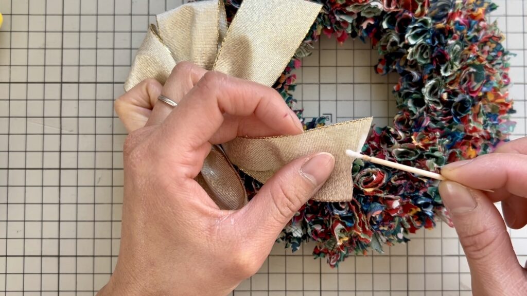 リボンの先端には薄めたボンドを塗り、ほつれ止めしておきます。