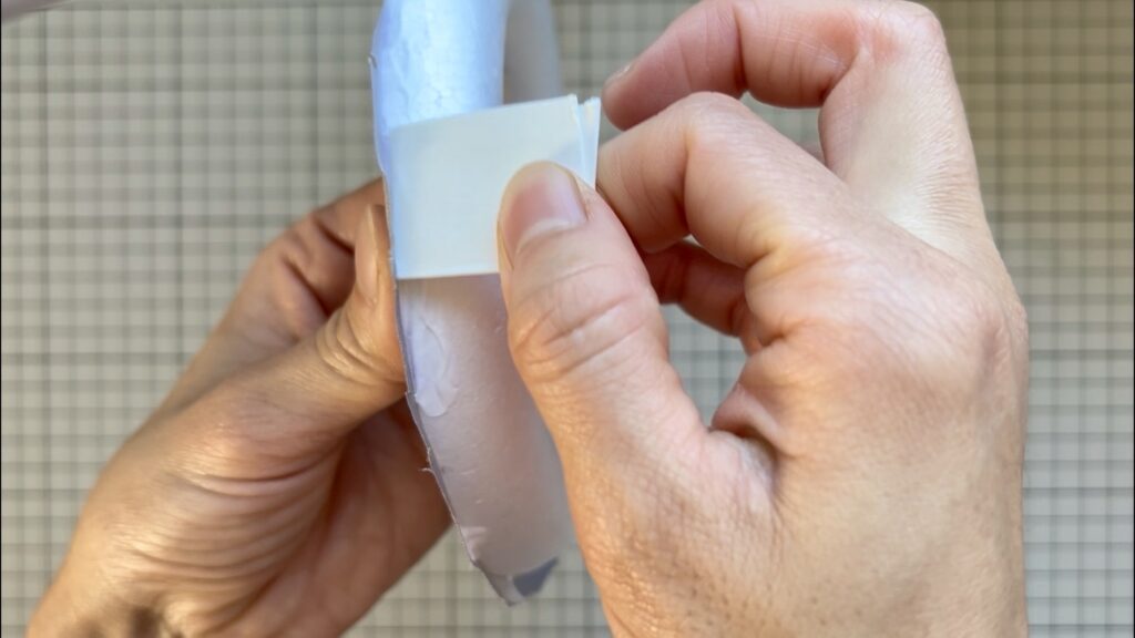 のりしろ部分に切り込み入れ、側面にボンドで貼りつけます。