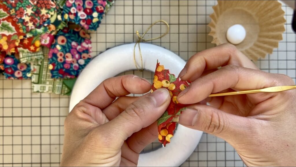 リバティのクリスマス柄で作る布リースの作り方|ミシンなし・はぎれで簡単